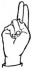 На ћирилици написано КОСТА РАБРЕНОВИЋ састоји се из 15 слова [?]. Исписано ћириличном једноручном азбуком за глувонеме: